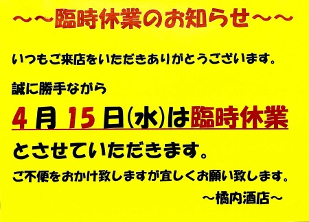【 橘内酒店 4月の入荷情報第1弾!! 】